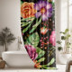 Modern shower curtain featuring a beautiful Pretty Pink Orange & Purple Floral Pattern set on a black background