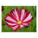 This vibrant cosmos blossom in stripes of deep red and white is very impressive.
