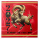 Elevate your 2027 lunar new year entertainment and dining experiences with this celebratory tile, which features the Fire Goat dancing on a luxurious faux red silk background bordered by faux gold foil, plus the Chinese letterform for the Goat/Sheep/Ram rendered in faux gold foil, standing in place of the zero in 2027.