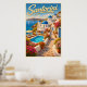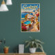 Transport yourself to the breathtaking shores of Santorini with our stunning vintage travel poster that captures the essence of this iconic Greek island.