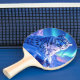 Add a supernatural touch to game time with this ping pong paddle, which features a majestic snow leopard with piercing blue eyes, its fur adorned with intricate patterns of frost and ice, as it perches atop a snow-capped mountain outcropping that's backlit by the setting sun and the aurora borealis. Reverse shows identical design. Personalize with a name!