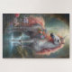 Stunning Unicorn jigsaw puzzle. © Jigsaw Wonderland at Zazzle. This puzzle has a stunning unicorn in white with pink mane and tail and flowers adorning her. She is standing in a scene with a waterfall in the background.