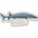A detailed dark blue vector drawing featuring sturgeon fish. The text part says 'Fishing'. A great gift for fishermen.