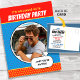 Carte d'invitation de fête d'anniversaire de style bande dessinée drôle ! Facile à personnaliser avec votre propre photo et texte personnalisé au recto et au verso. Cette carte colorée est conçue pour une fête d'anniversaire de 30 ans BBQ, mais tout le texte peut être personnalisé pour s'adapter à d'autres occasions ! Un design de style rétro dans des couleurs vives de rouge, bleu, orange, jaune et blanc. ♦ Pour remplacer la photo et le texte, cliquez sur "Personnaliser ce modèle" ♦ Entrez vos mots choisis dans les champs de texte. ♦ Cliquez sur "Changer" à côté de la photo pour la remplacer. ♦ ASTUCE UTILE : recadrez votre photo en une forme carrée similaire avant de la télécharger pour qu'elle soit positionnée correctement. ♦ Avec nos remerciements à Rodnae Productions pour la photo de placement.