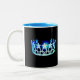 Un Aqua Turquoise brillant imprimé couronne à l'avant et au centre de chaque côté de cette tasse de café/cacao. Montré en tasse noire et blanche avec coordination intérieure bleue. Customisez et personnalisez ou achetez comme prévu.