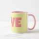 Mon oeuvre d'art numérique originale sur cette tasse présente un coeur motif tourbillonnant dans les tons mauve-rose, agissant comme la lettre "O" dans le mot LOVE. L'aspect rétro des lettres est conçu dans une teinte rose complémentaire au coeur et donne à cette tasse unique un air d'artsy sur un arrière - plan jaune rétro. L'intérieur et la poignée de cette tasse sont roses, mais vous pouvez changer la couleur si vous le souhaitez. Ce sont des tasses de 11 onces, juste la taille idéale pour votre café ou thé maison - ou même du chocolat chaud! Il ferait un grand cadeau pour la Saint-Valentin, et vous pouvez mettre des paquets de café, des sacs à thé ou du chocolat chaud à l'intérieur. Une autre idée de cadeau est de mettre un petit plante dedans pour le rendre spécial pour votre être cher.