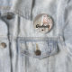 Stylish graduation button featuring a photo of the graduate, a graduate ceremony cap, students name, class year, and the word graduate in a script font.