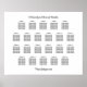 Stylish 22 Table Wedding Seating Chart Poster, please personalize the names of the couple and the names of the guests along with any of the other text that you may wish to personalize. A simple minimalistic poster featuring modern black text in a stylish layout on an elegant white background.