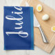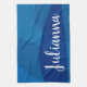 Stylish Abstract Shapes in Blue Personalized Name Kitchen Towel
