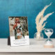 Honour your loved ones in style with our stunning remembrance memorial 2 photo plaque! This unique design showcases an arch photograph layered over another picture of your choosing. But the customization doesn't stop there - you can easily personalize the plaque with your own elegant serif text using our customizable template. Whether it's displayed at a funeral, memorial, celebration of life, or simply in your own home, this modern plaque is the perfect way to hold onto precious memories of your cherished loved one.