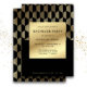 Make a bold statement with this modern black and gold bachelor party invitation, designed for the groom who values timeless sophistication. Featuring a sleek faux gold foil geometric pattern and clean, minimalist typography, this invite sets the tone for a classy night out or upscale cocktail celebration. The deep black background paired with metallic gold accents creates a luxe, Art Deco-inspired vibe—perfect for lounges, rooftop gatherings, or private events. Fully customizable with event date, location, and RSVP details, this stylish bachelor invitation is ideal for a refined send-off with just the right edge.
