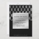 Make a bold statement with this modern black and gold bachelor party invitation, designed for the groom who values timeless sophistication. Featuring a sleek faux silver foil geometric pattern and clean, minimalist typography, this invite sets the tone for a classy night out or upscale cocktail celebration. The deep black background paired with metallic silver accents creates a luxe, Art Deco-inspired vibe—perfect for lounges, rooftop gatherings, or private events. Fully customizable with event date, location, and RSVP details, this stylish bachelor invitation is ideal for a refined send-off with just the right edge.