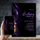 Invite your friends and loved ones to your birthday with this stylish black and purple birthday party invitation. The customizable text area in this invitation template allows you to effortlessly include all the necessary details for your special birthday celebration, including the date, time, venue, and RSVP information. A variety of paper types and corner styles are available for your unique invitations, along with the option to download if you prefer a digital format.