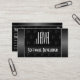 Make a lasting impression with this elegant business card design featuring shimmery black and white gradient borders and monogram pattern on a black background.