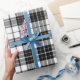 This chic, neutral wrapping paper features a timeless tartan plaid pattern in a sophisticated monochrome palette of black, white, and subtle grey tones. Its crisp lines and elegant simplicity make it the perfect choice for virtually any occasion, offering a versatile alternative to traditional bright colours.