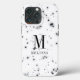 Stylish iPhone 13 Pro Case with black glow glitter drips with monogram initial, first name and year, it can be great treat for you or for anyone as a gift for birthday, graduation, etc.