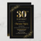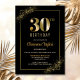 This stylish black and gold 30th birthday party invitation features a customizable text area that allows you to effortlessly include all the necessary details for your special birthday celebration, including the date, time, venue, and RSVP information. A variety of paper types and corner styles are available for your unique invitations, along with the option to download.