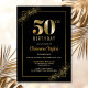 This stylish black and gold 50th birthday party invitation features a customizable text area that allows you to effortlessly include all the necessary details for your special birthday celebration, including the date, time, venue, and RSVP information. A variety of paper types and corner styles are available for your unique invitations, along with the option to download.