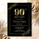 This stylish black and gold 90th birthday party invitation features a customizable text area that allows you to effortlessly include all the necessary details for your special birthday celebration, including the date, time, venue, and RSVP information. A variety of paper types and corner styles are available for your unique invitations, along with the option to download.