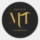 Stylish Black & Gold Monogram Initials Letters Classic Round Sticker