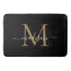 Modern Black Gold White Monogram Script Elegant Girly Bath Mat