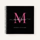 Stylish Black Hot Magenta Pink Monogram Initial Modern Script Calligraphy Name Notebook