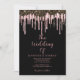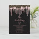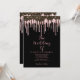 Stylish black rose gold glitter drips wedding invitation