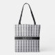 Modern stylish black star pattern and vertical stripes on light grey Tote Bag. Text can be personalized.