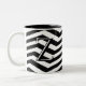 Stylish Black White Chevron Stripe Monogram Custom Two-Tone Coffee Mug