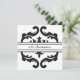 This bold custom Invitation in classic black and white features a modern take on the vintage damask pattern. The front side of this elegant invitation has a single, large damask emblem in black and bands of black and white to highlight the event heading. The reverse features a black and white frame to encompass the invitation text and a smaller damask emblem. As it is entirely customizable, this designer invitation can easily be changed to suit any occasion. If you require any assistance in customizing any of our products, please use the contact link provided below.