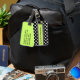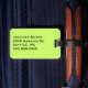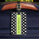 Spot your luggage from far away with this stylish acrylic luggage tag. The front is done in a black and white polka dot pattern, with a black and white striped band with a bright green centre, running across the middle. The back is done in a solid bright light green colour. Text in black, on the front and back of the tag, is fully customizable and ready to personalize.