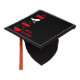 Stylish black white red graduation Cap Topper. Graduation announcement in elegant Art Deco style. Minimalistic font in white and red colours on a black background.