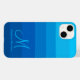 Stylish Blue Gradient Colour Block Monogram Case-Mate iPhone 14 Case. This trendy iPhone 14 case will be a perfect addition to your electronics collection by making a statement that you like modern designs with a personalized touch that includes your name and monogram initial. Moreover, this pattern can be easily transferred to another iPhone case if desired. Your name and choice of fonts can be easily inserted by using Zazzle's design tool.