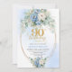 Stylish Blue Peony Gold Frame 90th Birthday Invite