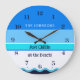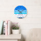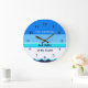 Introducing the perfect addition to your seaside retreat, a Personalized Family Name Beach House Wall Clock. This design features stripes of cool blues and turquoise reminiscent of the ocean, complemented by shades of white, dark, and light blue that mimic the rolling waves of the sea. The clock's serene colour palette evokes a sense of calm, making it an ideal centerpiece for creating a relaxed and tranquil ambiance in your beach house. Also perfect as an Ocean Home Housewarming gift.