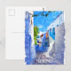 Stylish Blue White Mykonos Greece Watercolor Postcard