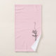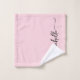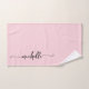 Chic Elegant Modern Monogram Name Signature Script Custom Personalized Blush Pink Bath Towel Set. This delicate design featuring custom name in a cursive hand lettered swash tail font typography or calligraphy in black on blush pink or baby pink colour background. Great stylish feminine housewarming gift, also for birthday, bridal shower, wedding, bachelorette party, sweet 16 birthday party, mother’s day, anniversary gift and for graduation party and It’s for the girl who likes stylish elegant things.