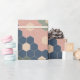 This stylish wrapping paper features a boho geometric pattern of vintage hexagon shapes in a modern colour palette of navy blue, forest green, blush pink, and mustard yellow. Great gift idea.