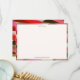 This thank you note features an abstract geometric pattern border in pink, gold, brown, and red tones with "thank you" at top and your custom name at bottom. Customizable with any name. For thank you notes, everyday correspondence, or personal stationery.