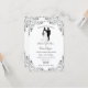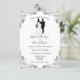 This wedding invitation features an elegant stylish botanical bride and groom illustration, with modern calligraphy.
