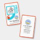 A bright coloured quotation mark motif design encapsulated by a red border at the outer rims of the card. Over at the top is your photo upload template with a size of 1,000 x 1,000 pix. Beside the template is an inverted bright blue caption "PRESS", change the caption remarks to suit your needs. Towards the base of the badge is a global heartbeat logo you can use followed by your prestigious name, job title and the business name.