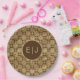 Stylish Brown & Gold Dahlias Pattern Monogram Paper Plate