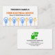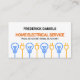 A white cover features a bulb and power plug motif near the base. Over at the top of the card are your prestigious name, business name (in red) and the contact details.