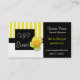 Stylish business card, with a whimsical yellow and white striped design on the left, with with a framed area for business name that has a pretty rose bloom on it. Text area on the right side of the card is solid black. Customize this great looking card for yourself, changing the font style, colours, and sizes to suit your likes, add more text fields on the back if you want.