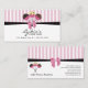 © Socialite Designs. Our whimsical cake pops bakery business card design has three cake pops tied with a bow, a black ribbon and striped background. A perfect business card for a bakery business or event catering business. Personalize this cake pops bakery business card with your information. Need HELP with customizing? Please do not hesitate to contact me with your requirements.