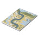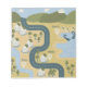 Cartoon map in flat style drawn with landmarks, mountains, road, sea, river, forest and houses
