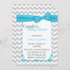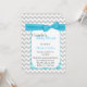 Stylish couple's baby shower invitation done in a light grey and white chevron zigzag pattern. Graphics of a turquoise decorative edged white text area, in the middle, has a pretty turquoise ribbon and bow, at the top. The backside is done in the same chevron pattern, with another white text area, at the bottom. Personalize all the text, front and back to suit your event needs.
