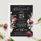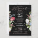 This elegant Stylish Chic Black Lavender Wild Flower Retirement Invitation features a bohemian floral design with wildflowers on a chic black background. The modern script in pastel pink and white combines with classical typography to create a sophisticated feel. The design showcases a retro vintage illustration of magenta red tulips, green leaves, and lavender blue and white wildflowers, evoking the essence of a beautiful garden in full bloom. The reverse side is solid black, and all text is customizable. Available in both print and digital formats, you can personalize your invitation to perfection. Explore colour variations and the full collection. Order now!