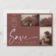 Stylish Chic Brown Collage Wedding 3 Photos Save the Date with Envelope.