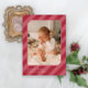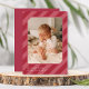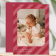 Stylish Christmas card features one photo and classic stripes in a bold new print with modern holiday pink and red colours. Customize this elegant card with your favourite family photo and personalized name with editable seasonal greeting.